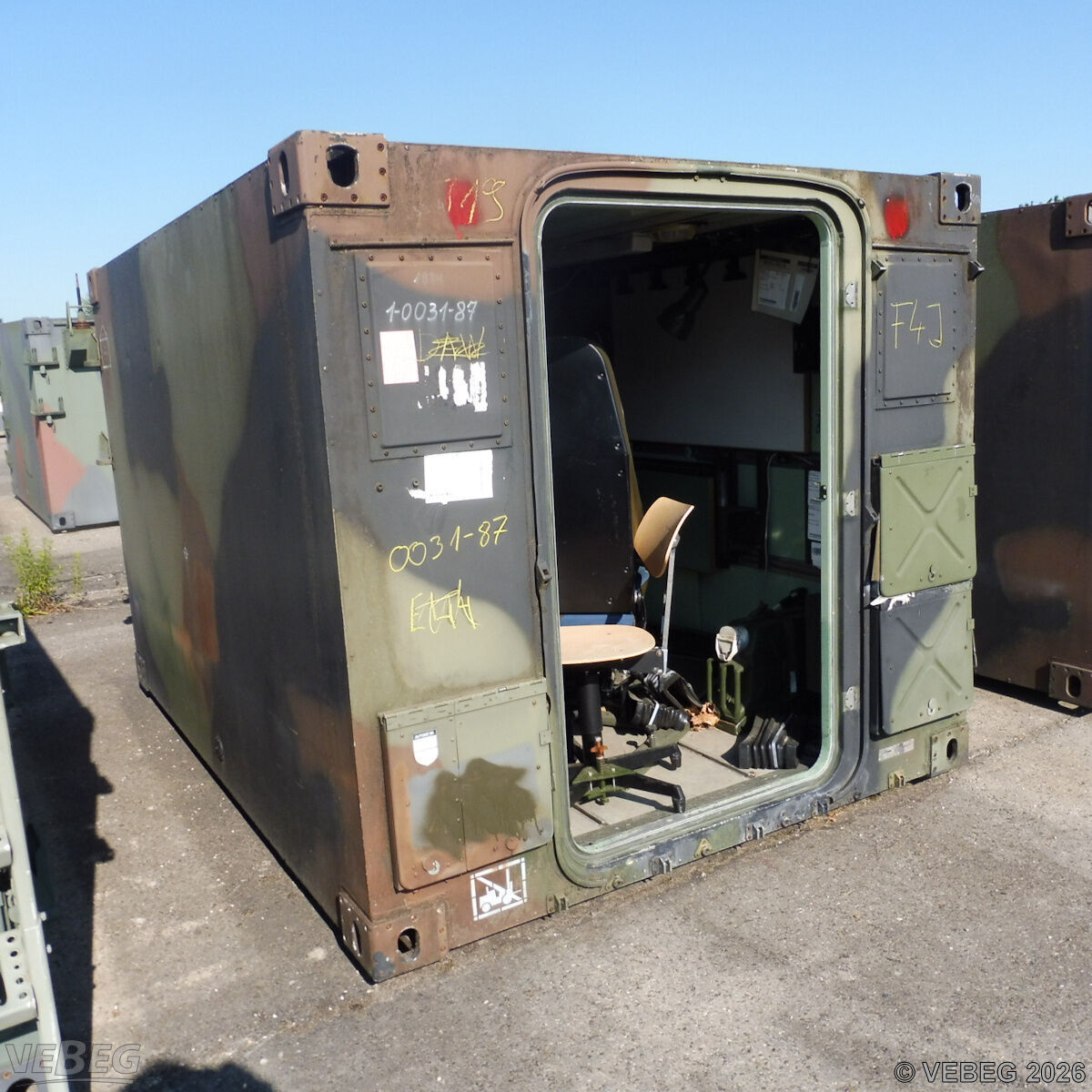 BemerkungenTermine für Besichtigung oder Abholung sind mit der zuständigen Lagerortdienststelle verpflichtend vorab per Telefon /oder E-Mail zu vereinbaren.Ausfuhrgenehmigungspflichtig [Info] .Lagerhilfsmittel sind Eigentum der Dienststelle. Keine Verladehilfe möglich. Die Rechnungsstellung erfolgt zuzüglich der gesetzlichen Umsatzsteuer. GebotsbasisStückBitte beachten Sie auch die Hinweise und Bedingungen im Vorspann zu dieser Ausschreibung: Die von der VEBEG angebotenen Waren stammen aus Aussonderungen ihrer Auftraggeber. Einzelheiten zum Zustand der jeweiligen Waren entnehmen Sie bitte den Lostexten. Insbesondere müssen technische Arbeitsmittel und Verbraucherprodukte i.S. des Geräte- und Produktsicherheitsgesetzes vor ihrer Verwendung instandgesetzt oder wiederaufgearbeitet werden. Zusätzlich verweisen wir ausdrücklich auf Abschnitte B und G unserer Allgemeinen Geschäftsbedingungen (AGB). Waren die nach Einschätzung der VEBEG der Ausfuhrgenehmigungspflicht unterliegen, sind mit Verweis auf die Punkte E3 und E4 unserer AGB entsprechend gekennzeichnet.Zum Gebotspreis kommt die gesetzliche Umsatzsteuer hinzu. Die Differenzbesteuerung gemäß § 25a UStG wird nur angewendet, wenn dies ausdrücklich in der jeweiligen Ausschreibung angegeben ist. | Lagerort / StandortBundeswehrBwDp Süd PFU Verwertung MatLgr 2 Koordinaten 49.064088, 8.401188 Labor-Service-Straße Tel.: 0721 12081-0 - BwDpSuedMatLgrKARLgrBer@bundeswehr.org 76149 Karlsruhe-Neureut |