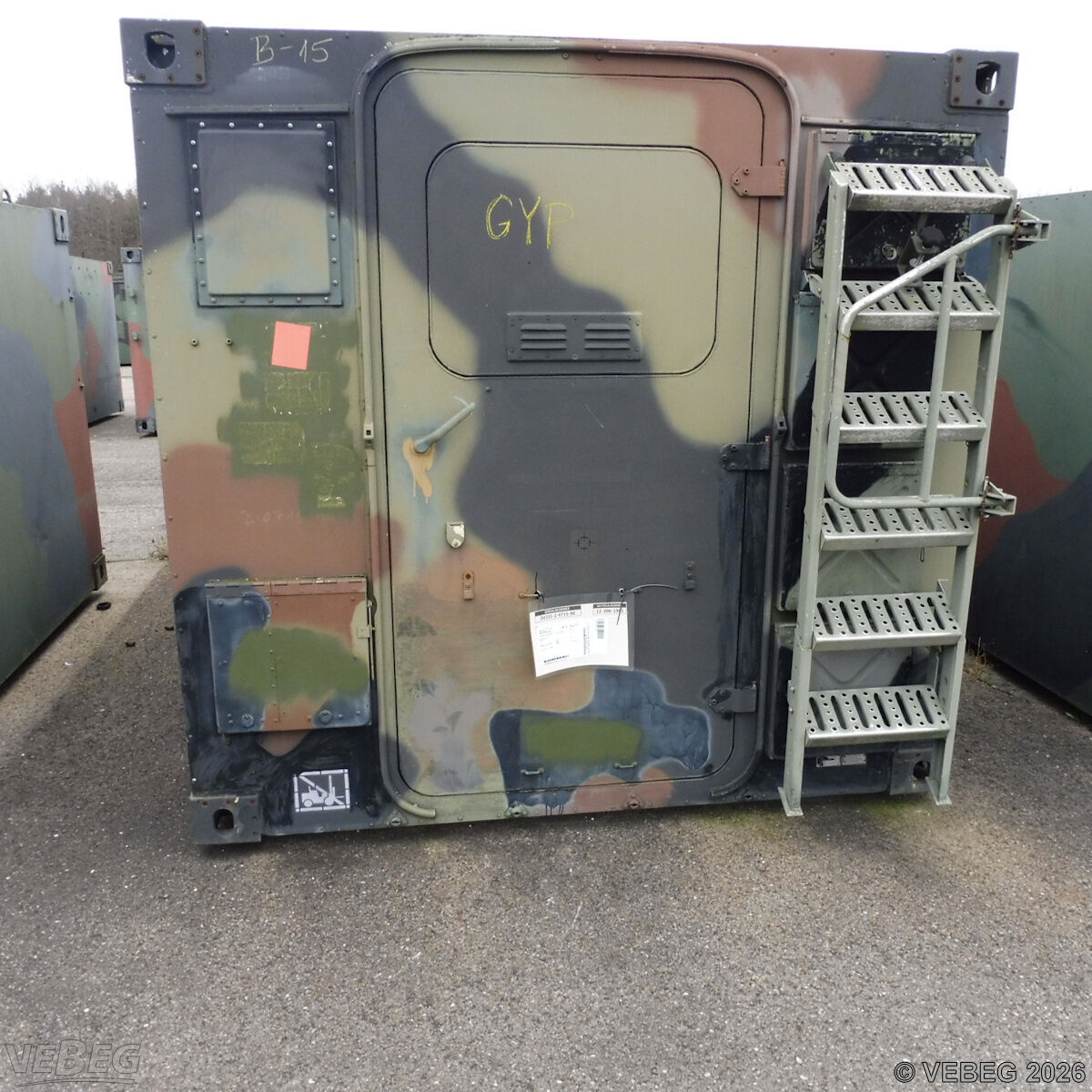 BemerkungenTermine für Besichtigung oder Abholung sind mit der zuständigen Lagerortdienststelle verpflichtend vorab per Telefon /oder E-Mail zu vereinbaren.Ausfuhrgenehmigungspflichtig [Info] .Lagerhilfsmittel sind Eigentum der Dienststelle. Keine Verladehilfe möglich. Die Rechnungsstellung erfolgt zuzüglich der gesetzlichen Umsatzsteuer. GebotsbasisStückBitte beachten Sie auch die Hinweise und Bedingungen im Vorspann zu dieser Ausschreibung: Die von der VEBEG angebotenen Waren stammen aus Aussonderungen ihrer Auftraggeber. Einzelheiten zum Zustand der jeweiligen Waren entnehmen Sie bitte den Lostexten. Insbesondere müssen technische Arbeitsmittel und Verbraucherprodukte i.S. des Geräte- und Produktsicherheitsgesetzes vor ihrer Verwendung instandgesetzt oder wiederaufgearbeitet werden. Zusätzlich verweisen wir ausdrücklich auf Abschnitte B und G unserer Allgemeinen Geschäftsbedingungen (AGB). Waren die nach Einschätzung der VEBEG der Ausfuhrgenehmigungspflicht unterliegen, sind mit Verweis auf die Punkte E3 und E4 unserer AGB entsprechend gekennzeichnet.Zum Gebotspreis kommt die gesetzliche Umsatzsteuer hinzu. Die Differenzbesteuerung gemäß § 25a UStG wird nur angewendet, wenn dies ausdrücklich in der jeweiligen Ausschreibung angegeben ist. | Lagerort / StandortBundeswehrBwDp Süd PFU Verwertung MatLgr 2 Koordinaten 49.064088, 8.401188 Labor-Service-Straße Tel.: 0721 12081-0 - BwDpSuedMatLgrKARLgrBer@bundeswehr.org 76149 Karlsruhe-Neureut |