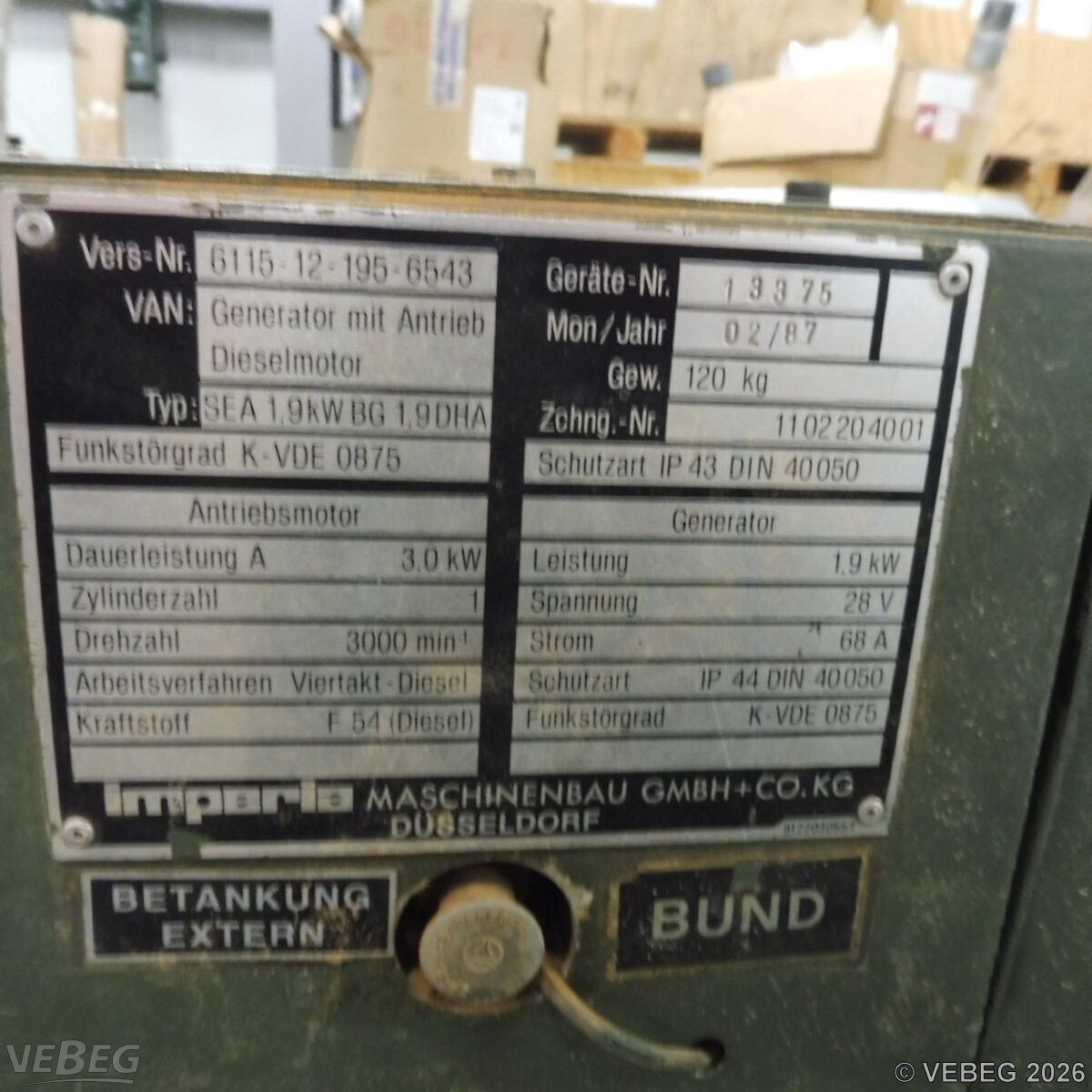 Die von der VEBEG angebotenen Waren stammen aus Aussonderungen ihrer Auftraggeber. Einzelheiten zum Zustand der jeweiligen Waren entnehmen Sie bitte den Lostexten. Insbesondere müssen technische Arbeitsmittel und Verbraucherprodukte i.S. des Geräte- und Produktsicherheitsgesetzes vor ihrer Verwendung instandgesetzt oder wiederaufgearbeitet werden. Zusätzlich verweisen wir ausdrücklich auf Abschnitte B und G unserer Allgemeinen Geschäftsbedingungen (AGB). Waren die nach Einschätzung der VEBEG der Ausfuhrgenehmigungspflicht unterliegen, sind mit Verweis auf die Punkte E3 und E4 unserer AGB entsprechend gekennzeichnet.Zum Gebotspreis kommt die gesetzliche Umsatzsteuer hinzu. Die Differenzbesteuerung gemäß § 25a UStG wird nur angewendet, wenn dies ausdrücklich in der jeweiligen Ausschreibung angegeben ist.