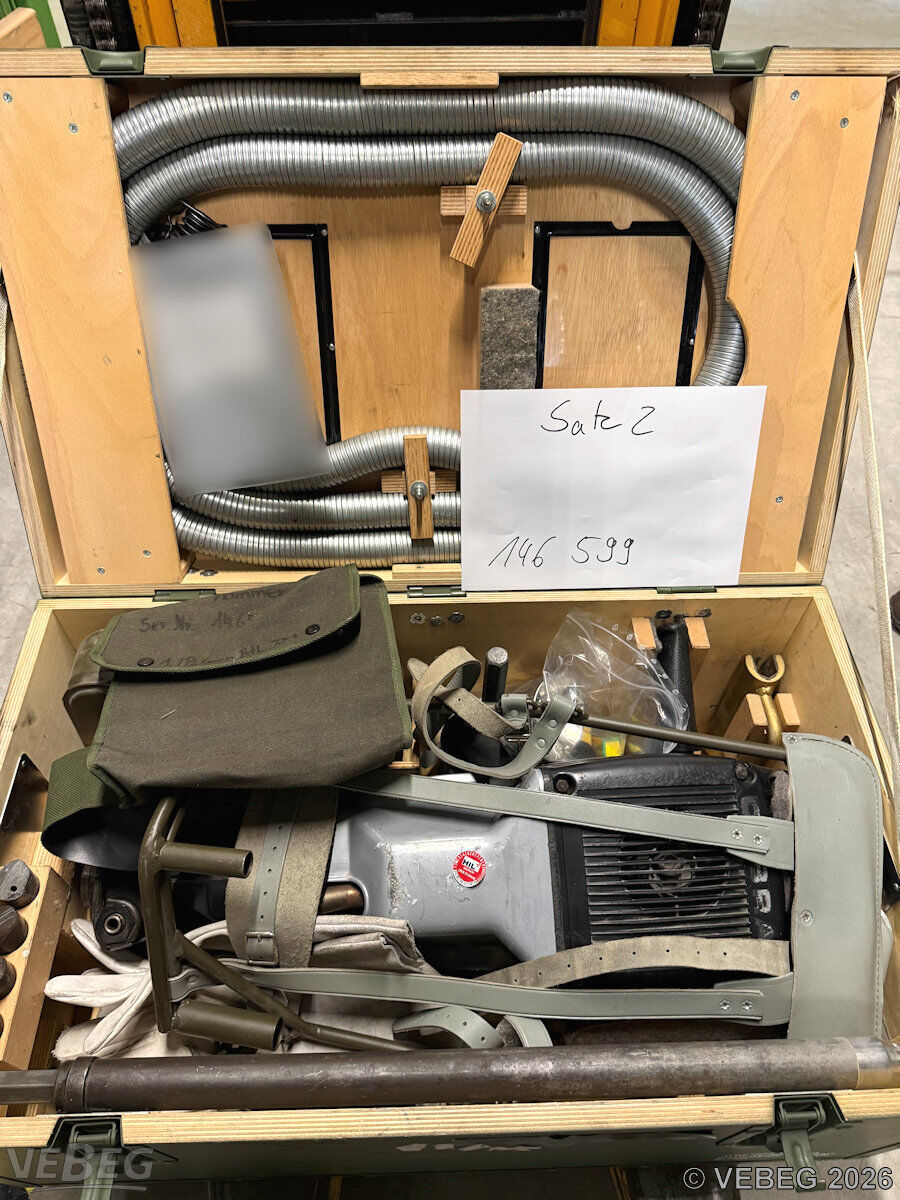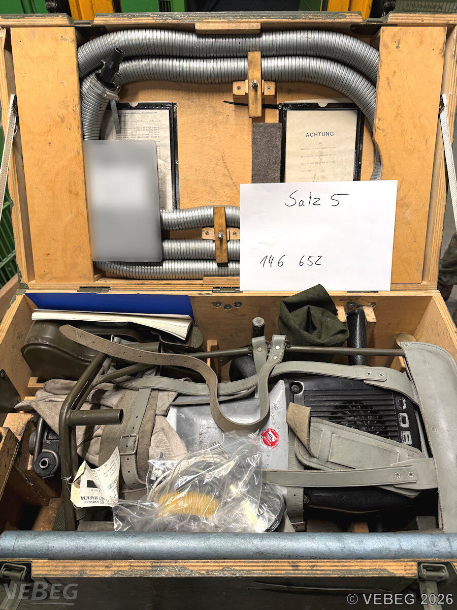 BemerkungenTermine für Besichtigung oder Abholung sind mit der zuständigen Lagerortdienststelle verpflichtend vorab per Telefon /oder E-Mail zu vereinbaren.Die Rechnungsstellung erfolgt zuzüglich der gesetzlichen Umsatzsteuer. GebotsbasisPostenBitte beachten Sie auch die Hinweise und Bedingungen im Vorspann zu dieser Ausschreibung: Die von der VEBEG angebotenen Waren stammen aus Aussonderungen ihrer Auftraggeber. Einzelheiten zum Zustand der jeweiligen Waren entnehmen Sie bitte den Lostexten. Insbesondere müssen technische Arbeitsmittel und Verbraucherprodukte i.S. des Geräte- und Produktsicherheitsgesetzes vor ihrer Verwendung instandgesetzt oder wiederaufgearbeitet werden. Zusätzlich verweisen wir ausdrücklich auf Abschnitte B und G unserer Allgemeinen Geschäftsbedingungen (AGB). Waren die nach Einschätzung der VEBEG der Ausfuhrgenehmigungspflicht unterliegen, sind mit Verweis auf die Punkte E3 und E4 unserer AGB entsprechend gekennzeichnet.Zum Gebotspreis kommt die gesetzliche Umsatzsteuer hinzu. Die Differenzbesteuerung gemäß § 25a UStG wird nur angewendet, wenn dies ausdrücklich in der jeweiligen Ausschreibung angegeben ist. | Lagerort / StandortBundeswehrPzGrenBtl 371 Erzgebirgs-Kaserne Zschopauer Straße 43 Tel.: 03735 917-0 Durchwahl: 3195 09496 Marienberg | ||||||||