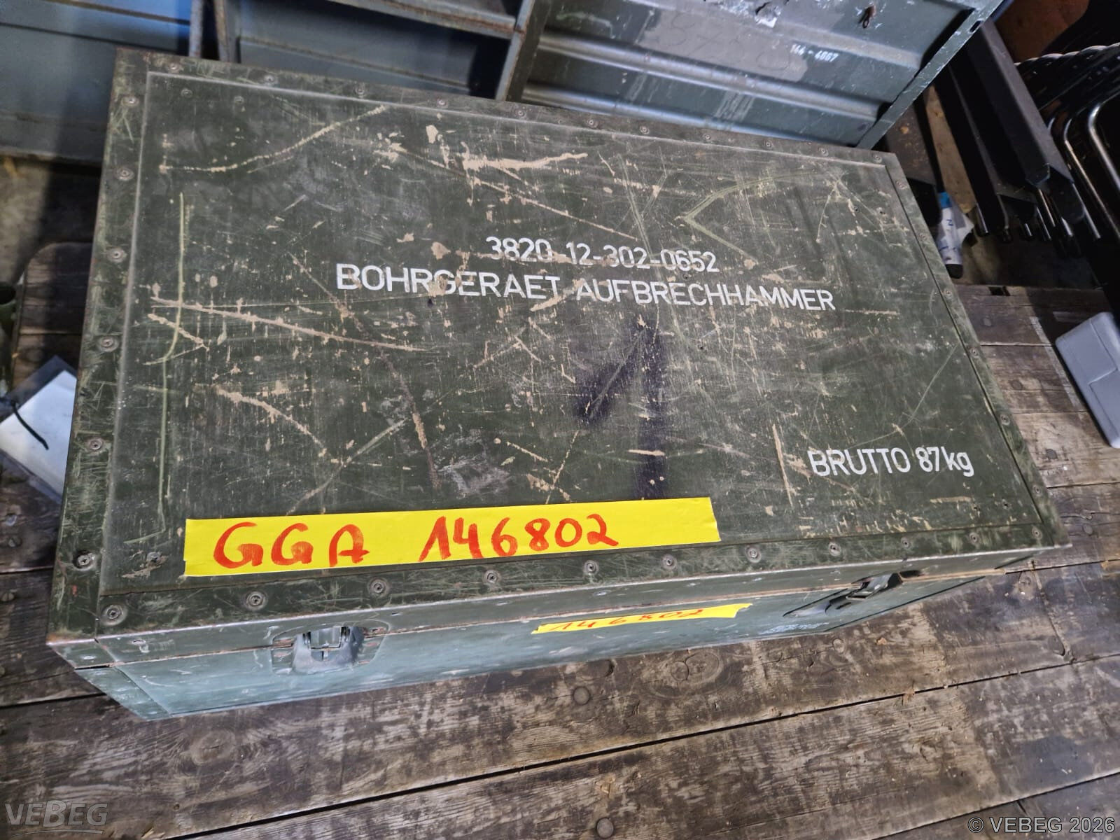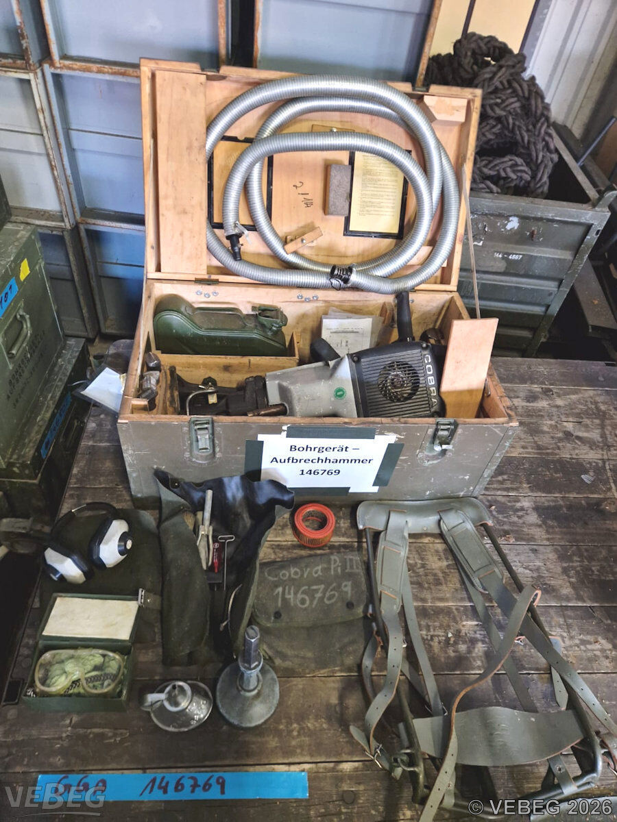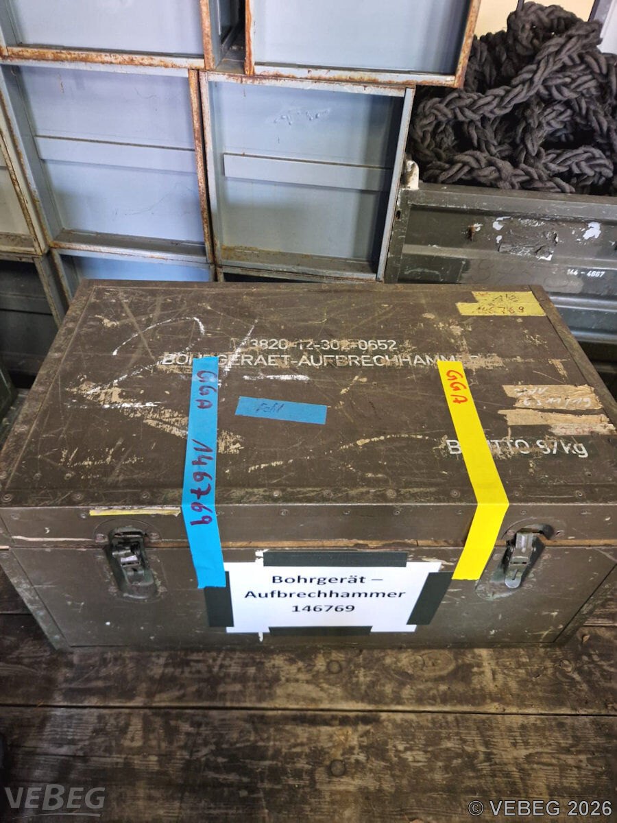 BemerkungenTermine für Besichtigung oder Abholung sind mit der zuständigen Lagerortdienststelle verpflichtend vorab per Telefon /oder E-Mail zu vereinbaren.Die Rechnungsstellung erfolgt zuzüglich der gesetzlichen Umsatzsteuer. GebotsbasisPostenBitte beachten Sie auch die Hinweise und Bedingungen im Vorspann zu dieser Ausschreibung: Die von der VEBEG angebotenen Waren stammen aus Aussonderungen ihrer Auftraggeber. Einzelheiten zum Zustand der jeweiligen Waren entnehmen Sie bitte den Lostexten. Insbesondere müssen technische Arbeitsmittel und Verbraucherprodukte i.S. des Geräte- und Produktsicherheitsgesetzes vor ihrer Verwendung instandgesetzt oder wiederaufgearbeitet werden. Zusätzlich verweisen wir ausdrücklich auf Abschnitte B und G unserer Allgemeinen Geschäftsbedingungen (AGB). Waren die nach Einschätzung der VEBEG der Ausfuhrgenehmigungspflicht unterliegen, sind mit Verweis auf die Punkte E3 und E4 unserer AGB entsprechend gekennzeichnet.Zum Gebotspreis kommt die gesetzliche Umsatzsteuer hinzu. Die Differenzbesteuerung gemäß § 25a UStG wird nur angewendet, wenn dies ausdrücklich in der jeweiligen Ausschreibung angegeben ist. | Lagerort / StandortBundeswehrSpezPiRgt 164 Julius-Leber-Kaserne Matthias-Claudius-Straße 135 Tel.: 04841 903-0 Durchwahl: 7140 25813 Husum | ||||||||
