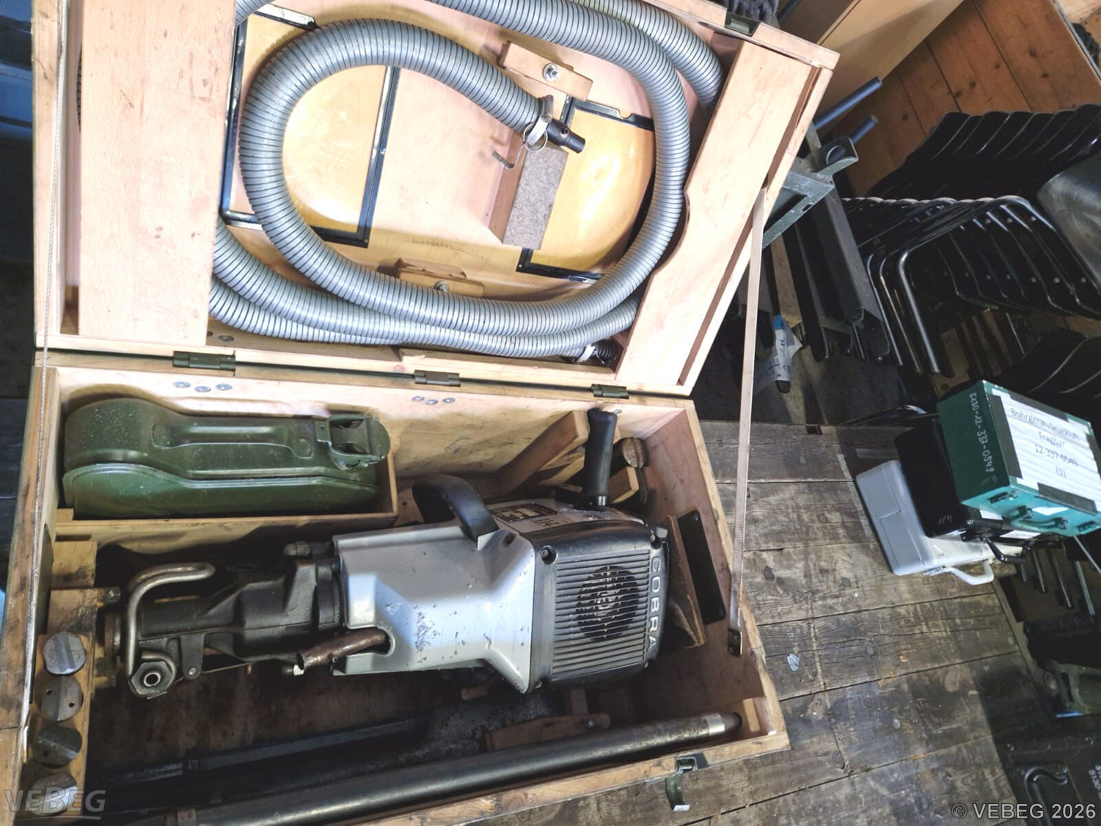 Bohraufnahme Ø 22,4 mm, mit Ottomotor und diversem Zubehör, in Aufbewahrungskasten.