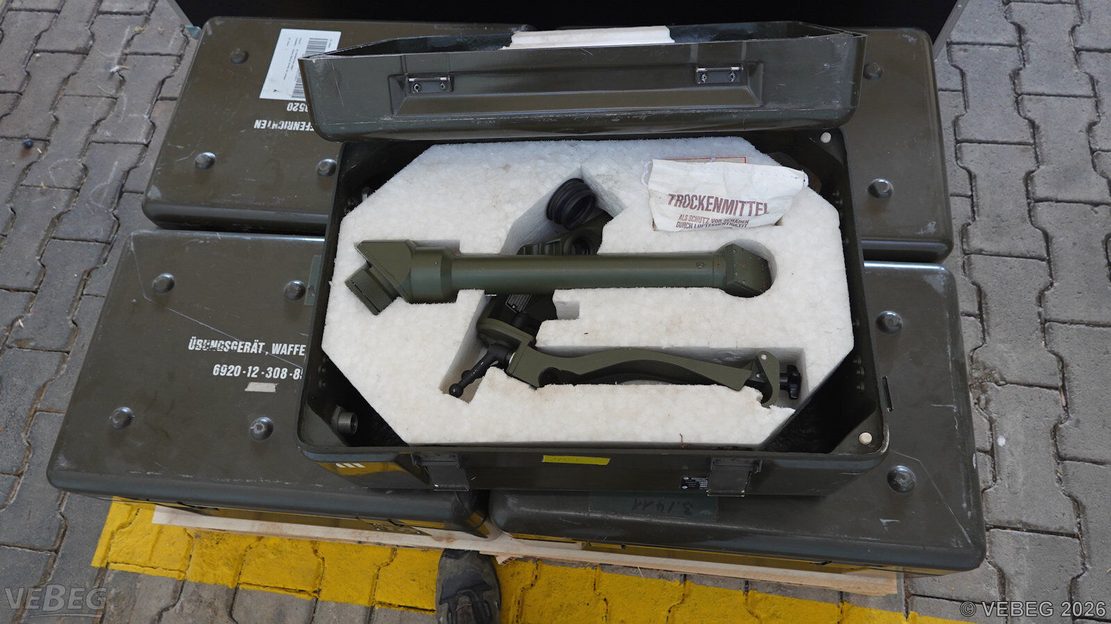 BemerkungenTermine für Besichtigung oder Abholung sind mit der zuständigen Lagerortdienststelle verpflichtend vorab per Telefon /oder E-Mail zu vereinbaren.Ausfuhrgenehmigungspflichtig [Info] .Lagerhilfsmittel sind Eigentum der Dienststelle. Die Rechnungsstellung erfolgt zuzüglich der gesetzlichen Umsatzsteuer. GebotsbasisPostenBitte beachten Sie auch die Hinweise und Bedingungen im Vorspann zu dieser Ausschreibung: Die von der VEBEG angebotenen Waren stammen aus Aussonderungen ihrer Auftraggeber. Einzelheiten zum Zustand der jeweiligen Waren entnehmen Sie bitte den Lostexten. Insbesondere müssen technische Arbeitsmittel und Verbraucherprodukte i.S. des Geräte- und Produktsicherheitsgesetzes vor ihrer Verwendung instandgesetzt oder wiederaufgearbeitet werden. Zusätzlich verweisen wir ausdrücklich auf Abschnitte B und G unserer Allgemeinen Geschäftsbedingungen (AGB). Waren die nach Einschätzung der VEBEG der Ausfuhrgenehmigungspflicht unterliegen, sind mit Verweis auf die Punkte E3 und E4 unserer AGB entsprechend gekennzeichnet.Zum Gebotspreis kommt die gesetzliche Umsatzsteuer hinzu. Die Differenzbesteuerung gemäß § 25a UStG wird nur angewendet, wenn dies ausdrücklich in der jeweiligen Ausschreibung angegeben ist. | Lagerort / StandortBundeswehrBwDp Süd PFU Verwertung Materiallager Hardheim Am Wurmberg 21 Tel.: 06283 2278-0 Durchwahl: 270 pascalneubig@bundeswehr.org 74736 Hardheim |