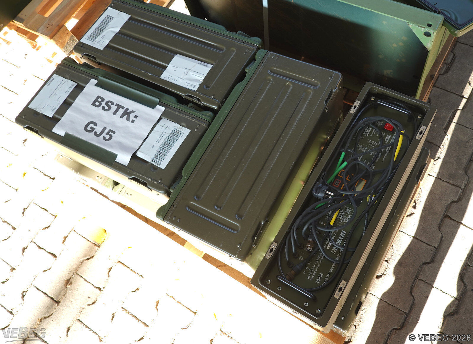 BemerkungenTermine für Besichtigung oder Abholung sind mit der zuständigen Lagerortdienststelle verpflichtend vorab per Telefon /oder E-Mail zu vereinbaren.Ausfuhrgenehmigungspflichtig [Info] . Der Verkauf gebrauchter Elektro- und Elektronikgeräte im Sinne der Anlage 1 zu § 2 Abs. 1 ElektroG erfolgt ausschließlich an inländische Abnehmer mit deutscher Rechnungsadresse.Lagerhilfsmittel sind Eigentum der Dienststelle. Die Rechnungsstellung erfolgt zuzüglich der gesetzlichen Umsatzsteuer. GebotsbasisPostenBitte beachten Sie auch die Hinweise und Bedingungen im Vorspann zu dieser Ausschreibung: Die von der VEBEG angebotenen Waren stammen aus Aussonderungen ihrer Auftraggeber. Einzelheiten zum Zustand der jeweiligen Waren entnehmen Sie bitte den Lostexten. Insbesondere müssen technische Arbeitsmittel und Verbraucherprodukte i.S. des Geräte- und Produktsicherheitsgesetzes vor ihrer Verwendung instandgesetzt oder wiederaufgearbeitet werden. Zusätzlich verweisen wir ausdrücklich auf Abschnitte B und G unserer Allgemeinen Geschäftsbedingungen (AGB). Waren die nach Einschätzung der VEBEG der Ausfuhrgenehmigungspflicht unterliegen, sind mit Verweis auf die Punkte E3 und E4 unserer AGB entsprechend gekennzeichnet.Zum Gebotspreis kommt die gesetzliche Umsatzsteuer hinzu. Die Differenzbesteuerung gemäß § 25a UStG wird nur angewendet, wenn dies ausdrücklich in der jeweiligen Ausschreibung angegeben ist. | Lagerort / StandortBundeswehrBwDp Süd PFU Verwertung Materiallager Hardheim Am Wurmberg 21 Tel.: 06283 2278-0 Durchwahl: 270 pascalneubig@bundeswehr.org 74736 Hardheim |