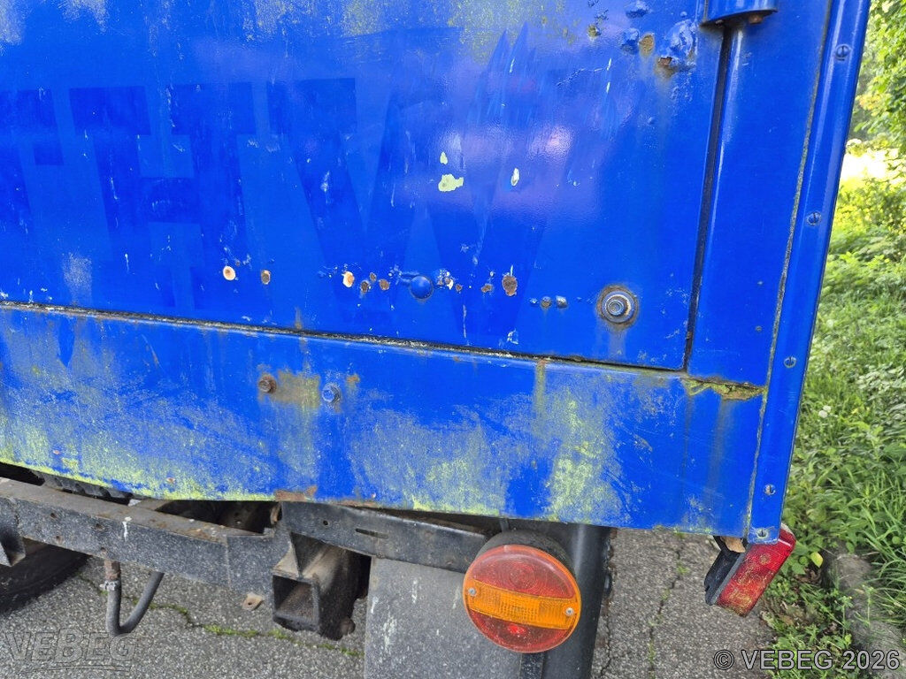 Deichsel verzogen, Reifen überaltert, Schläuche porös, Ausbauspuren Sondereinbauten, Lackschäden und Klebereste durch Folienentfernung, Gebrauchsspuren, Stand- und starke Korrosionsschäden mit teilweisen Durchrostungen, alters- und nutzungsbedingter Verschleiß, HU abgelaufen.