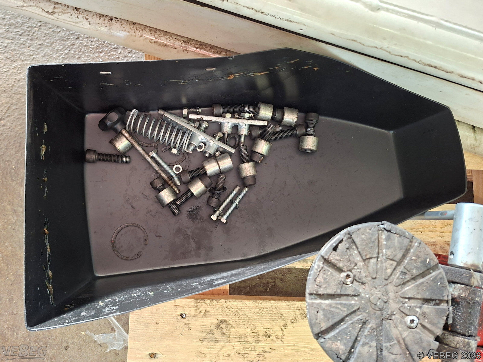 - Die Hebebühne liegt demontiert zur Abholung bereit.