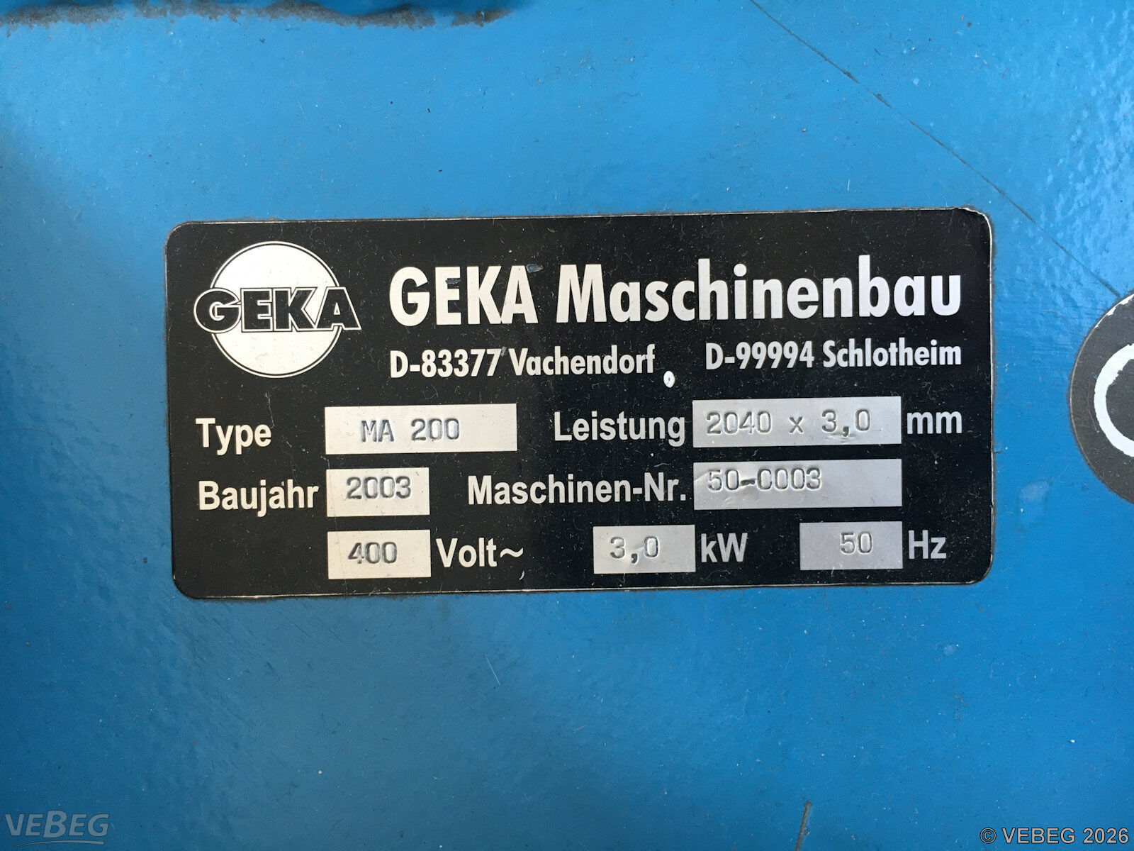 Baujahr 2003, S/N 50-0003; 3,0 kW, 400 V, 50 Hz, Arbeitsbreite 2.040 mm;