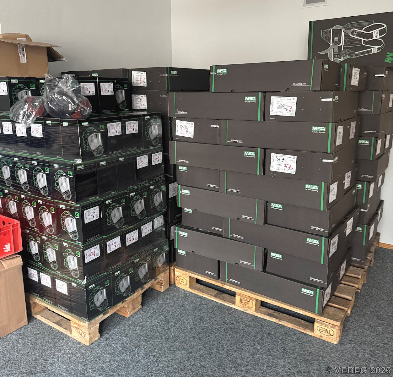die Atemschutzvollmasken sind in Kartons verpackt.