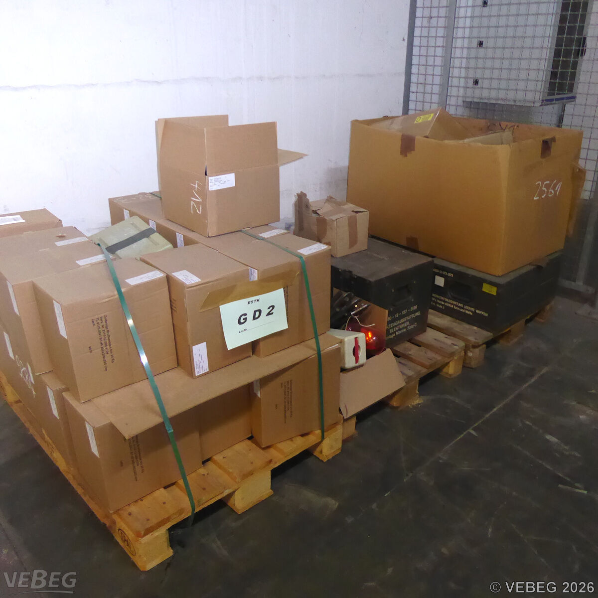 BemerkungenBesichtigung:Nur am 09.03.2026 jeweils von 9.30 bis 12.00 Uhr und von 13.00 bis 15.00 Uhr (Einlass bis spätestens 14.00 Uhr) Gültige Personalpapiere sind erforderlich. Hinweise: Lagerhilfsmittel (Paletten) können nur im Tausch oder gegen Leihschein mitgenommen werden. Ausfuhrgenehmigungspflichtig [Info] . Der Verkauf gebrauchter Elektro- und Elektronikgeräte im Sinne der Anlage 1 zu § 2 Abs. 1 ElektroG erfolgt ausschließlich an inländische Abnehmer mit deutscher Rechnungsadresse.Lagerhilfsmittel sind Eigentum der Dienststelle. Die Rechnungsstellung erfolgt zuzüglich der gesetzlichen Umsatzsteuer. GebotsbasisPostenBitte beachten Sie auch die Hinweise und Bedingungen im Vorspann zu dieser Ausschreibung: Die von der VEBEG angebotenen Waren stammen aus Aussonderungen ihrer Auftraggeber. Einzelheiten zum Zustand der jeweiligen Waren entnehmen Sie bitte den Lostexten. Insbesondere müssen technische Arbeitsmittel und Verbraucherprodukte i.S. des Geräte- und Produktsicherheitsgesetzes vor ihrer Verwendung instandgesetzt oder wiederaufgearbeitet werden. Zusätzlich verweisen wir ausdrücklich auf Abschnitte B und G unserer Allgemeinen Geschäftsbedingungen (AGB). Waren die nach Einschätzung der VEBEG der Ausfuhrgenehmigungspflicht unterliegen, sind mit Verweis auf die Punkte E3 und E4 unserer AGB entsprechend gekennzeichnet.Zum Gebotspreis kommt die gesetzliche Umsatzsteuer hinzu. Die Differenzbesteuerung gemäß § 25a UStG wird nur angewendet, wenn dies ausdrücklich in der jeweiligen Ausschreibung angegeben ist. | Lagerort / StandortBundeswehrdepot Ost-Materiallager Zeithain- Abendrothstraße 20 Tel.: 03525 5612-0 Frau Andreazza Durchwahl: 3642 01619 Zeithain |