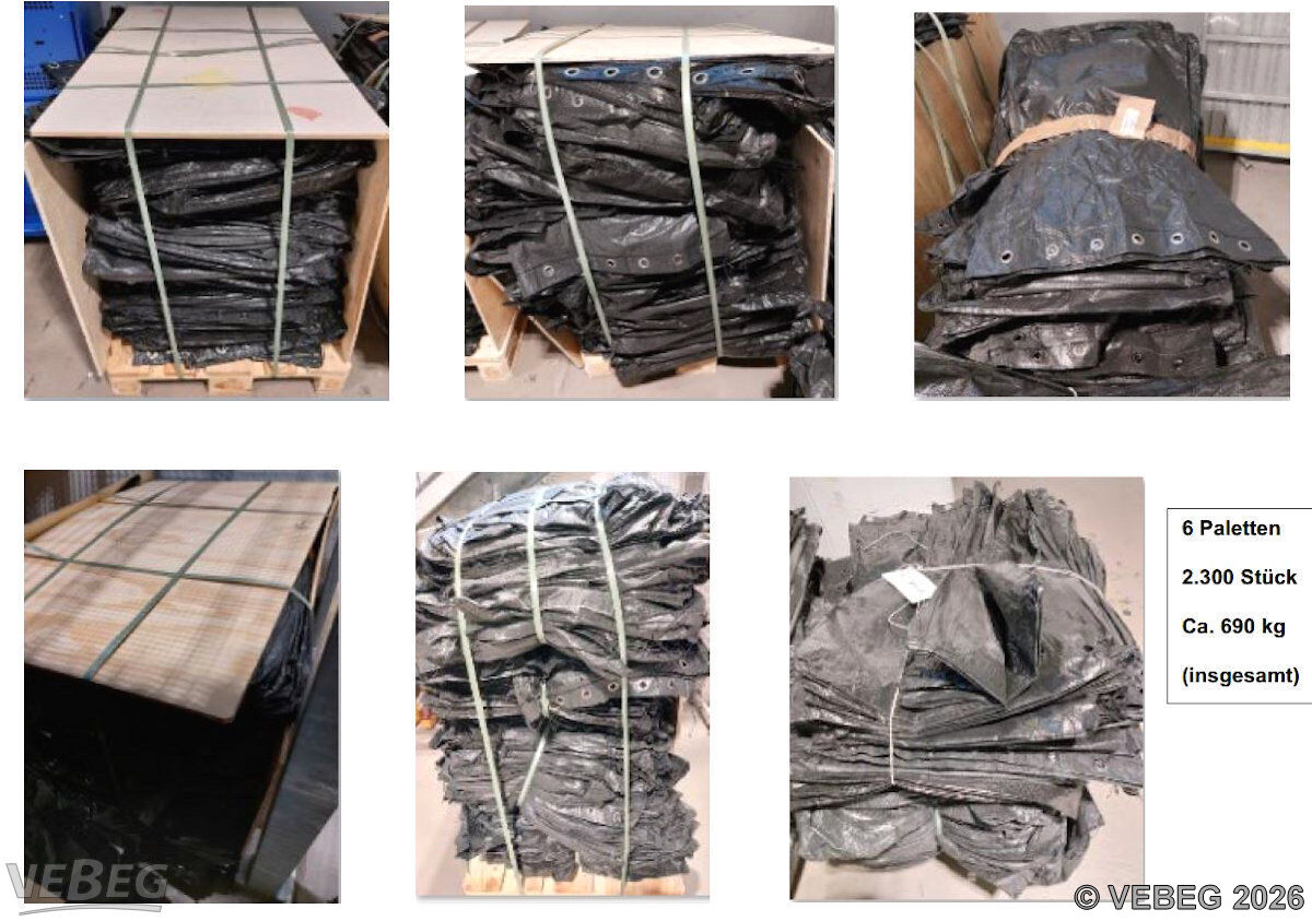 zum Verschließen an der Oberseite, verpackt auf 6 Paletten.