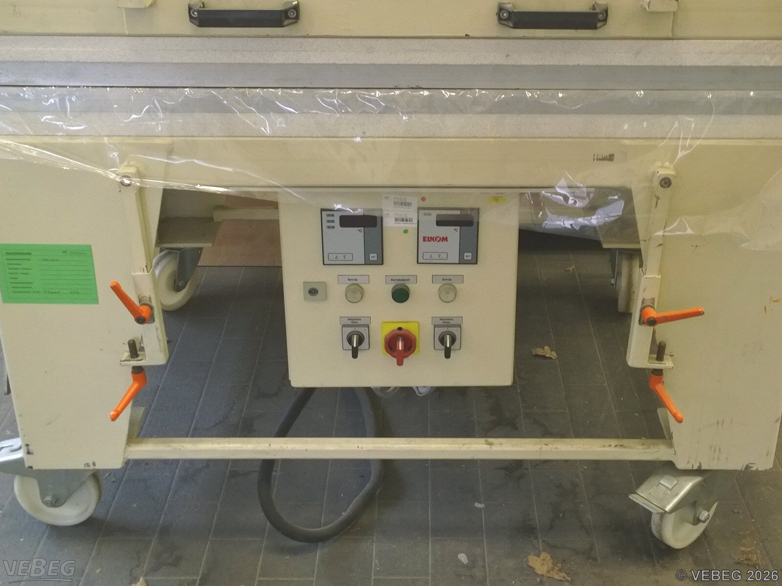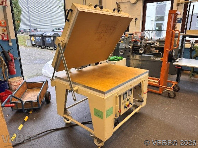 Baujahr 1997, Außerbetriebnahme 2025, Maße 1.500 x 1.200 x 1.000 mm; Heizplatten oben/unten 8 kW, Temperatur max. 250 °C.