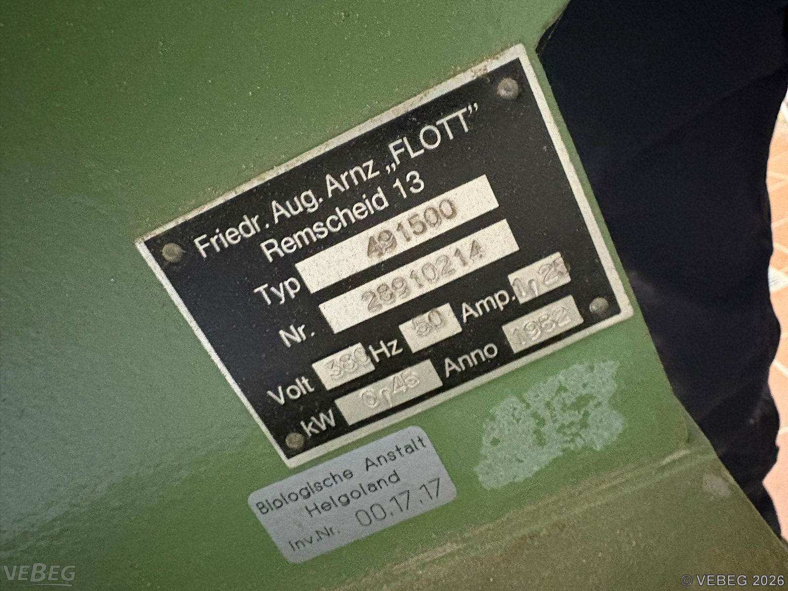 Baujahr 1982; 380 V, 50 Hz, ca. 0,45 kW, mit Sägetisch, mechanische Schnitthöhenverstellung, robuste Industrieausführung, Sicherheitsabdeckung am Sägeblatt.