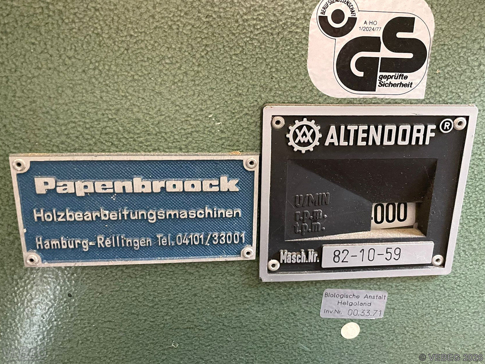 Baujahr 1982, S/N 82-10-59; 400 V, ca. 5,5 kW.