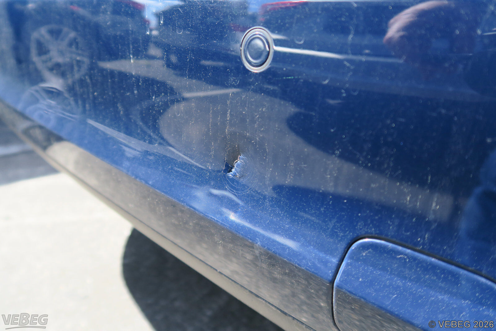 Stoßfänger hinten Anfahrschaden, Felge vorn links verschrammt, Kratzer, alters- und nutzungsbedingter Verschleiß.