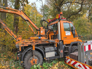 Motorleistung 130 kW, 7.613 Betriebsstunden; Ausleger Mulag MHU 800 ohne Mähkopf, Warnkreuz auf dem Dach, Kommunalhydraulik, AHK;