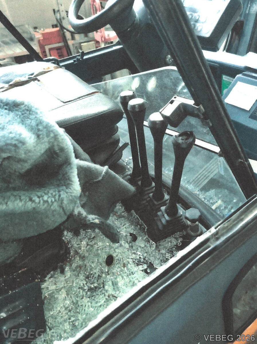 Unfallschaden (Stapler ist umgekippt, Fahrerkabine defekt), Lackschäden, keine weiteren Zustandsangaben bekannt.
