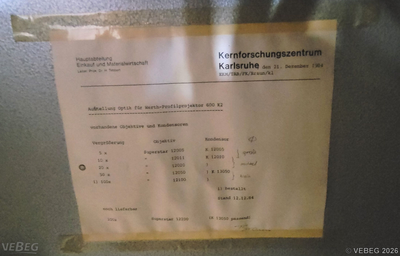 | NoticeTermine für Besichtigung oder Abholung sind mit der zuständigen Lagerortdienststelle verpflichtend vorab per Telefon /oder E-Mail zu vereinbaren.Abbau, Abtransport und Säuberung des Standplatzes sind vom Käufer in Abstimmung mit der Abgabe-Dienststelle vorzunehmen.Besichtigung nur nach telefonischer Anmeldung möglich. Gültige Ausweisdokumente (Reisepass oder Personalausweis) sind hierzu erforderlich. Bidding basisStückBitte beachten Sie auch die Hinweise und Bedingungen im Vorspann zu dieser Ausschreibung: Die von der VEBEG angebotenen Waren stammen aus Aussonderungen ihrer Auftraggeber. Einzelheiten zum Zustand der jeweiligen Waren entnehmen Sie bitte den Lostexten. Insbesondere müssen technische Arbeitsmittel und Verbraucherprodukte i.S. des Geräte- und Produktsicherheitsgesetzes vor ihrer Verwendung instandgesetzt oder wiederaufgearbeitet werden. Zusätzlich verweisen wir ausdrücklich auf Abschnitte B und G unserer Allgemeinen Geschäftsbedingungen (AGB). Waren die nach Einschätzung der VEBEG der Ausfuhrgenehmigungspflicht unterliegen, sind mit Verweis auf die Punkte E3 und E4 unserer AGB entsprechend gekennzeichnet.Zum Gebotspreis kommt die gesetzliche Umsatzsteuer hinzu. Die Differenzbesteuerung gemäß § 25a UStG wird nur angewendet, wenn dies ausdrücklich in der jeweiligen Ausschreibung angegeben ist. | Lagerort / StandortKarlsruher Institutfür Technologie (KIT) Abt. EVM-ZGW Campus Nord Hermann-von-Helmholtz-Platz 1 Tel.: 0721 608-0 Herr Schröder Durchwahl: 25355 christian.schroeder@kit.edu 76344 Eggenstein-Leopoldshafen | ||||||