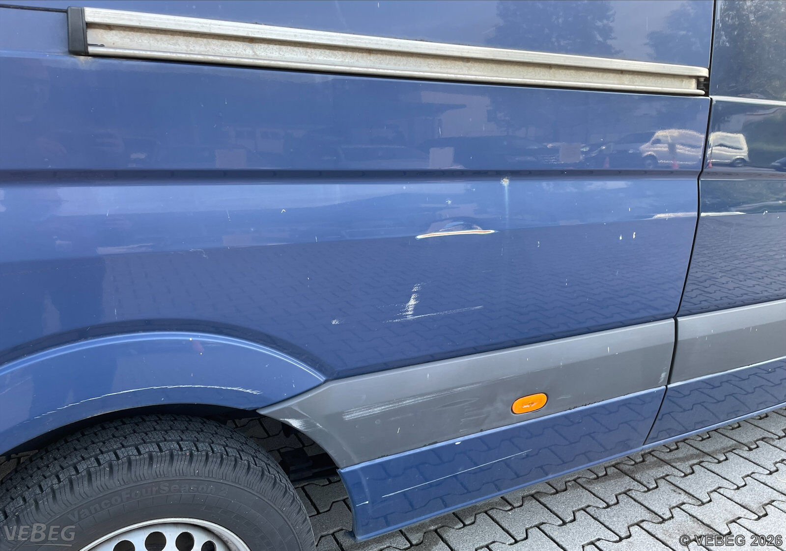 nur 1 Fahrzeugschlüssel vorhanden, Streifschaden rechts, Aufstiegsstufe hinten Anfahrschaden, rundum Kratzer und Dellen, Lackschäden, Frontscheibe Steinschläge, Abdeckungen unter Armaturenbrett fehlen, Gebrauchsspuren, Korrosionsschäden, alters- und nutzungsbedingter Verschleiß, HU abgelaufen.