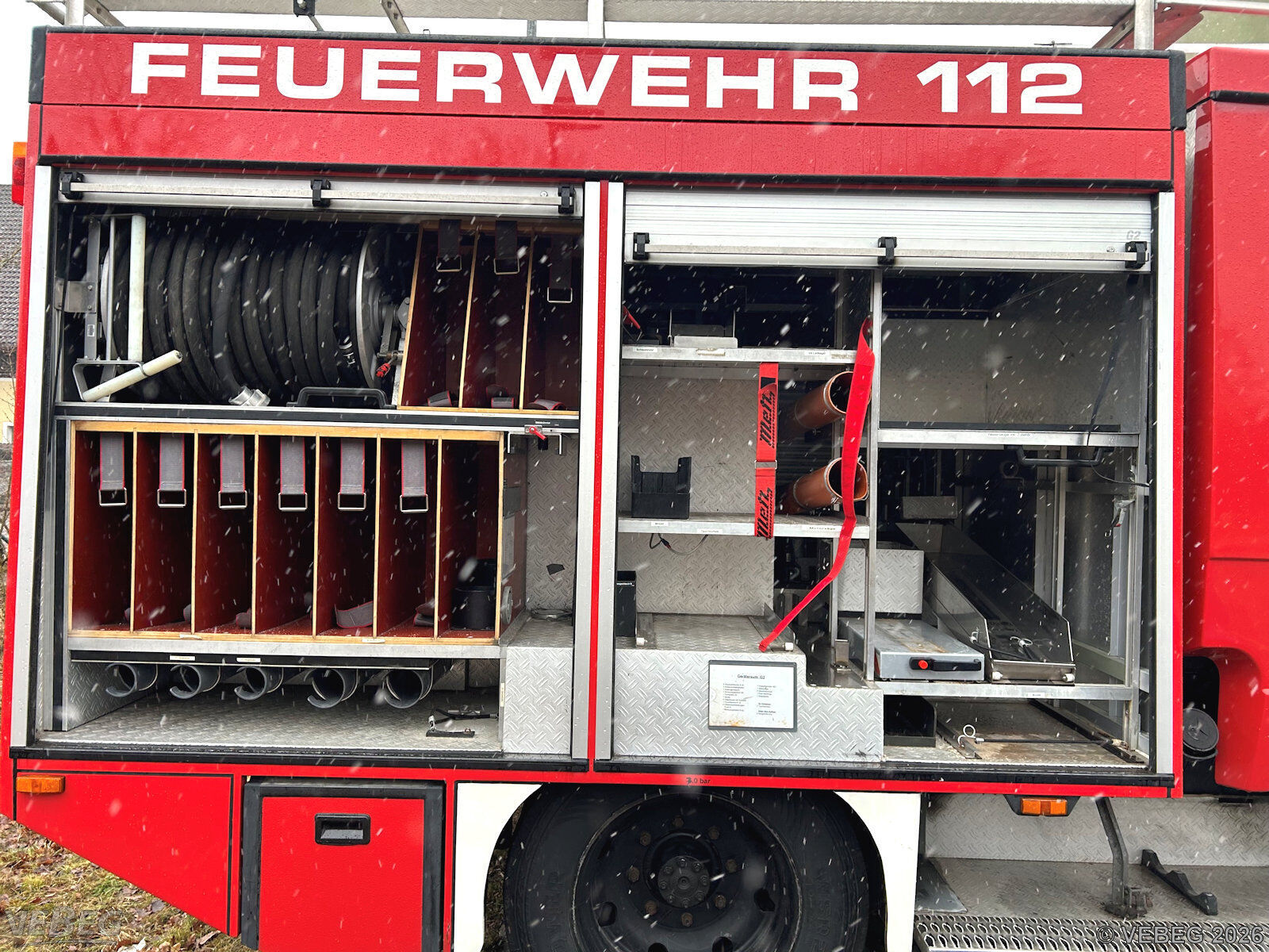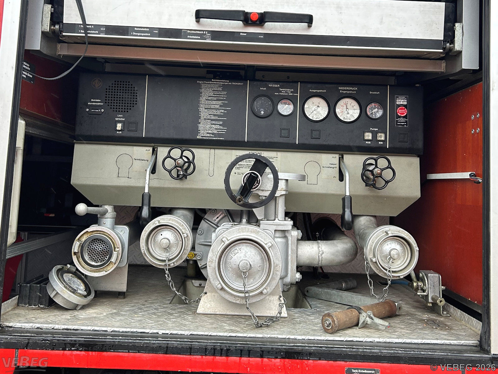 Motorleistung 125 kW; Doppelkabine, 9 Sitzplätze, Kofferaufbau Ziegler mit Rollläden, Löschwassertank 600 l, Heckeinbaupumpe, AHK;