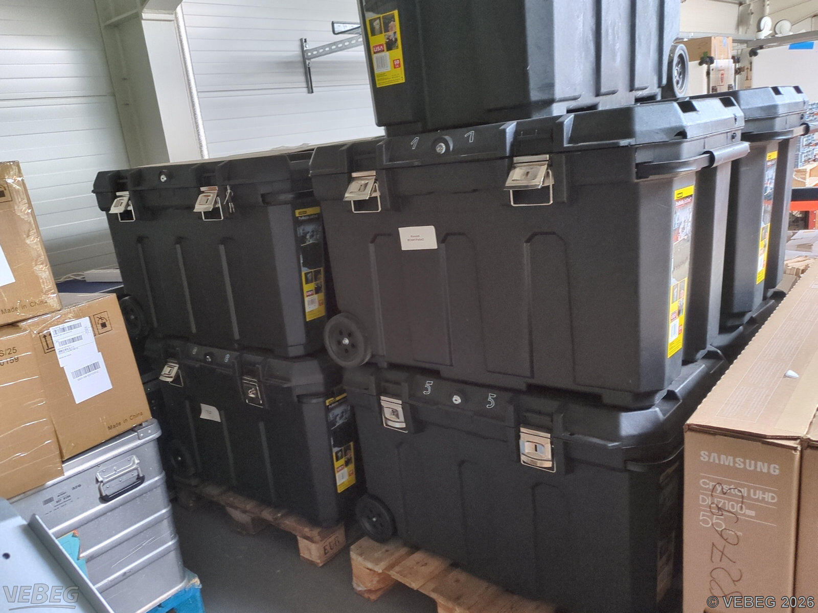 9 Kunststoffboxen Stanley Mobile Job Chest, Inhalt 190 l, mit Zugstange und Rädern;