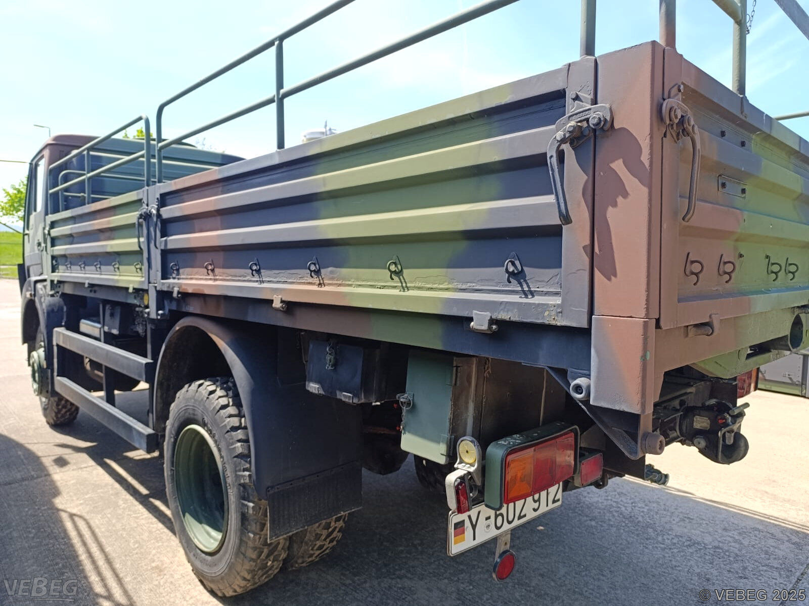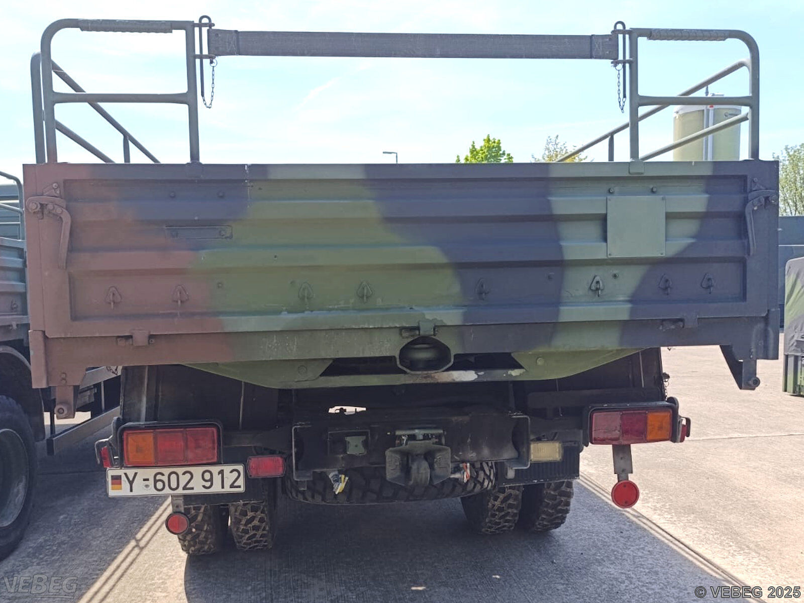 NoticeTermine für Besichtigung oder Abholung sind mit der zuständigen Lagerortdienststelle verpflichtend vorab per Telefon /oder E-Mail zu vereinbaren.Ausfuhrgenehmigungspflichtig [Info] . Bidding basisStückBitte beachten Sie auch die Hinweise und Bedingungen im Vorspann zu dieser Ausschreibung: Die von der VEBEG angebotenen Fahrzeuge stammen aus Aussonderungen ihrer Auftraggeber. Einzelheiten zum Zustand der jeweiligen Fahrzeuge entnehmen Sie bitte den Lostexten. Zusätzlich verweisen wir ausdrücklich auf Abschnitte B und G unserer Allgemeinen Geschäftsbedingungen (AGB). Fahrzeuge die nach Einschätzung der VEBEG der Ausfuhrgenehmigungspflicht unterliegen, sind mit Verweis auf die Punkte E3 und E4 unserer AGB entsprechend gekennzeichnet. Zum Gebotspreis kommt die gesetzliche Umsatzsteuer hinzu. Die Differenzbesteuerung gemäß § 25a UStG wird nur angewendet, wenn dies ausdrücklich in der jeweiligen Ausschreibung angegeben ist. | Lagerort / StandortBundeswehr1./ITBtl 383 -MatGrp- Henne-Kaserne Nissaer Weg 10 Tel.: 0361 432-0 Durchwahl: 2080 ITBtl3831.KpMatGrp@bundeswehr.org 99099 Erfurt |
