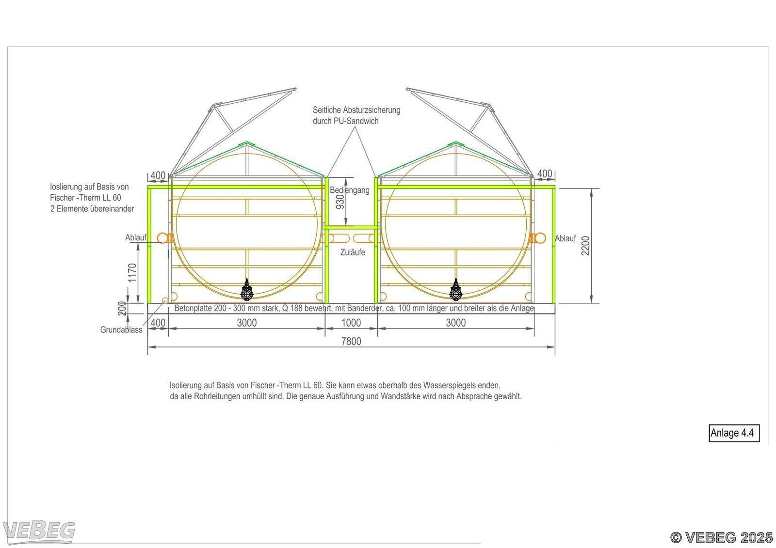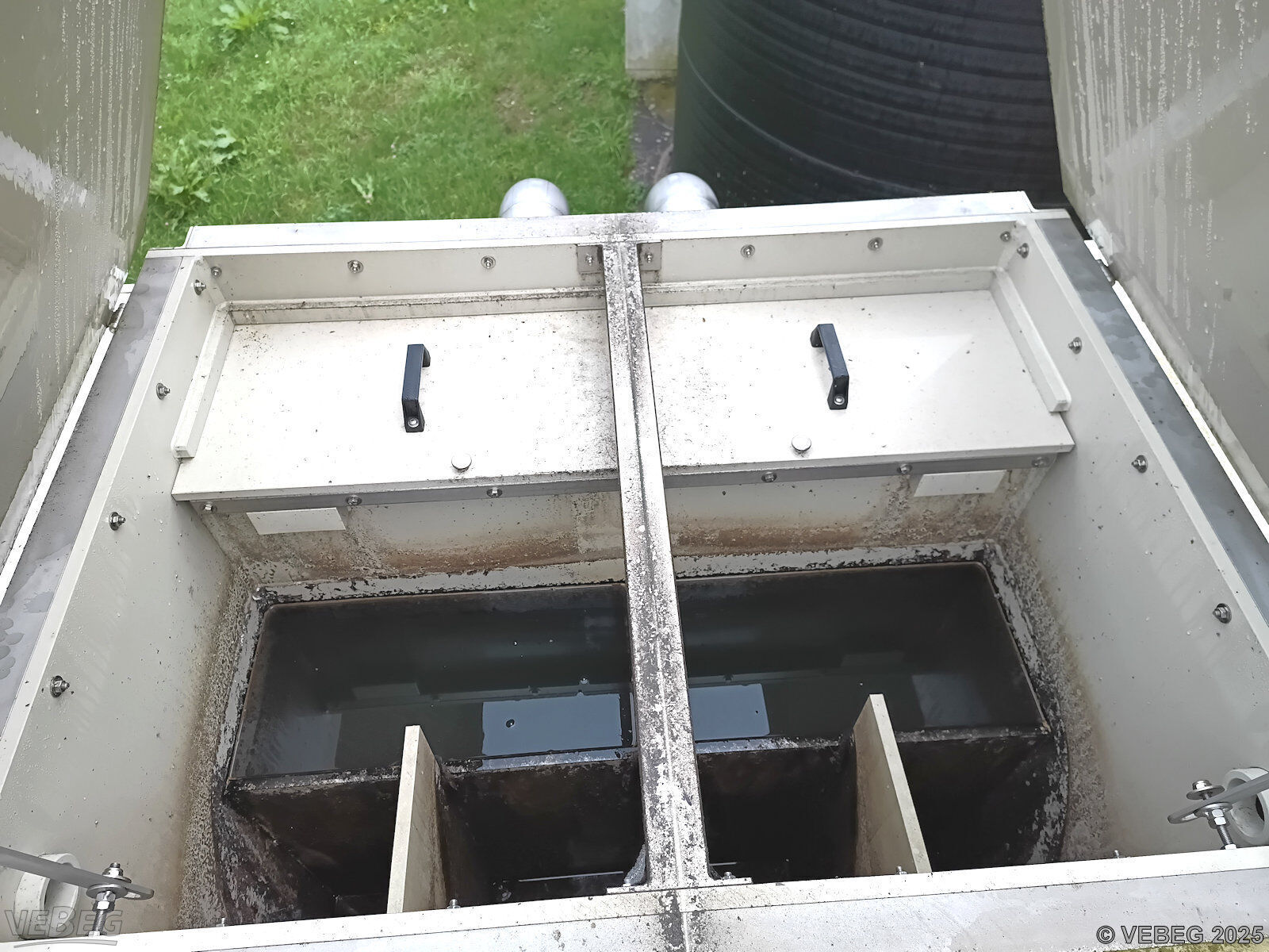 4 Becken mit je 3 Kammern und GFK-Abdeckungen,