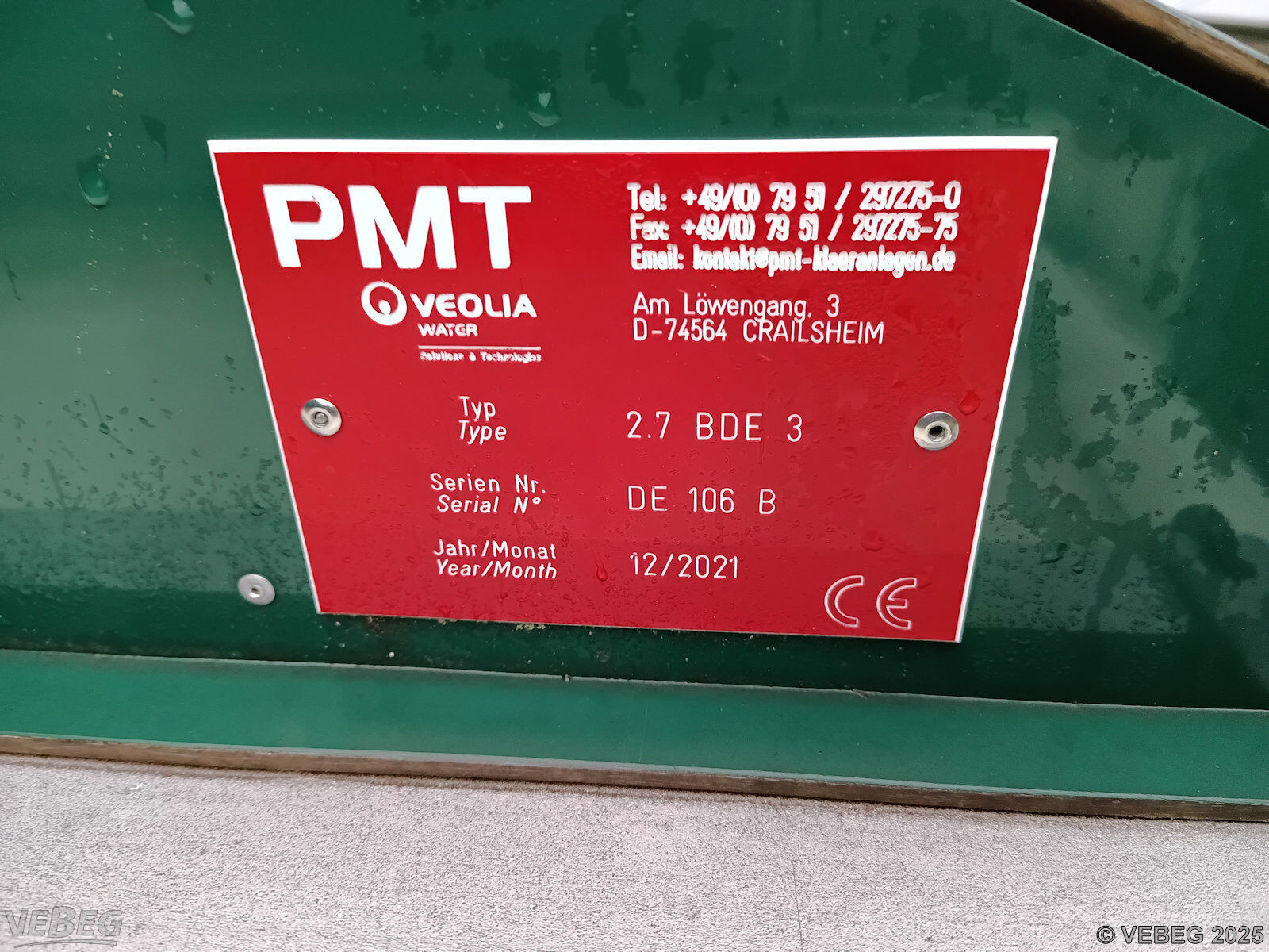 | NoticeTermine für Besichtigung oder Abholung sind mit der zuständigen Lagerortdienststelle verpflichtend vorab per Telefon /oder E-Mail zu vereinbaren.Abbau, Abtransport und Säuberung des Standplatzes sind vom Käufer in Abstimmung mit der Abgabe-Dienststelle vorzunehmen. Das gesamte Material, sowie anfallende Arbeitsstoffe müssen vom Käufer übernommen werden. Für die Erfüllung aller vertraglichen Verpflichtungen hat der Käufer mit der Zahlung des Kaufpreises eine Sicherheit in Höhe von 1.500 Euro zu leisten, die nach Vertragserfüllung zurückerstattet wird. Bidding basisStückBitte beachten Sie auch die Hinweise und Bedingungen im Vorspann zu dieser Ausschreibung: Die von der VEBEG angebotenen Waren stammen aus Aussonderungen ihrer Auftraggeber. Einzelheiten zum Zustand der jeweiligen Waren entnehmen Sie bitte den Lostexten. Insbesondere müssen technische Arbeitsmittel und Verbraucherprodukte i.S. des Geräte- und Produktsicherheitsgesetzes vor ihrer Verwendung instandgesetzt oder wiederaufgearbeitet werden. Zusätzlich verweisen wir ausdrücklich auf Abschnitte B und G unserer Allgemeinen Geschäftsbedingungen (AGB). Waren die nach Einschätzung der VEBEG der Ausfuhrgenehmigungspflicht unterliegen, sind mit Verweis auf die Punkte E3 und E4 unserer AGB entsprechend gekennzeichnet.Zum Gebotspreis kommt die gesetzliche Umsatzsteuer hinzu. Die Differenzbesteuerung gemäß § 25a UStG wird nur angewendet, wenn dies ausdrücklich in der jeweiligen Ausschreibung angegeben ist. | Lagerort / StandortGemeinde WaldstettenKläranlage Tiergarten 3 73550 Waldstetten Ansprechpartner: Herr Stütz Mobil: 0170 2917185 Mail: bauamt@waldstetten.de |