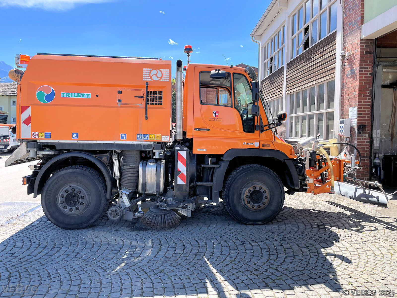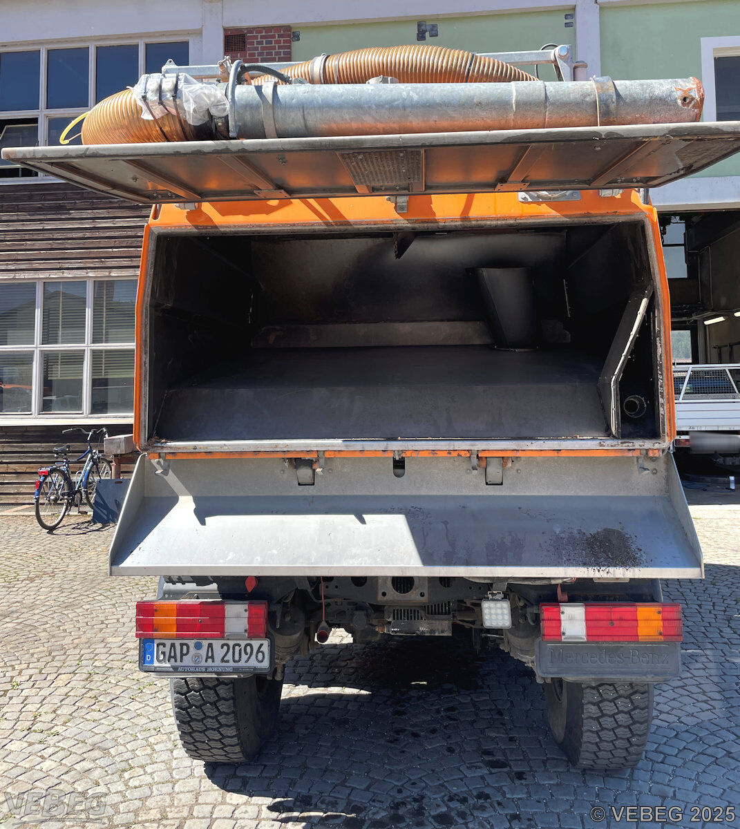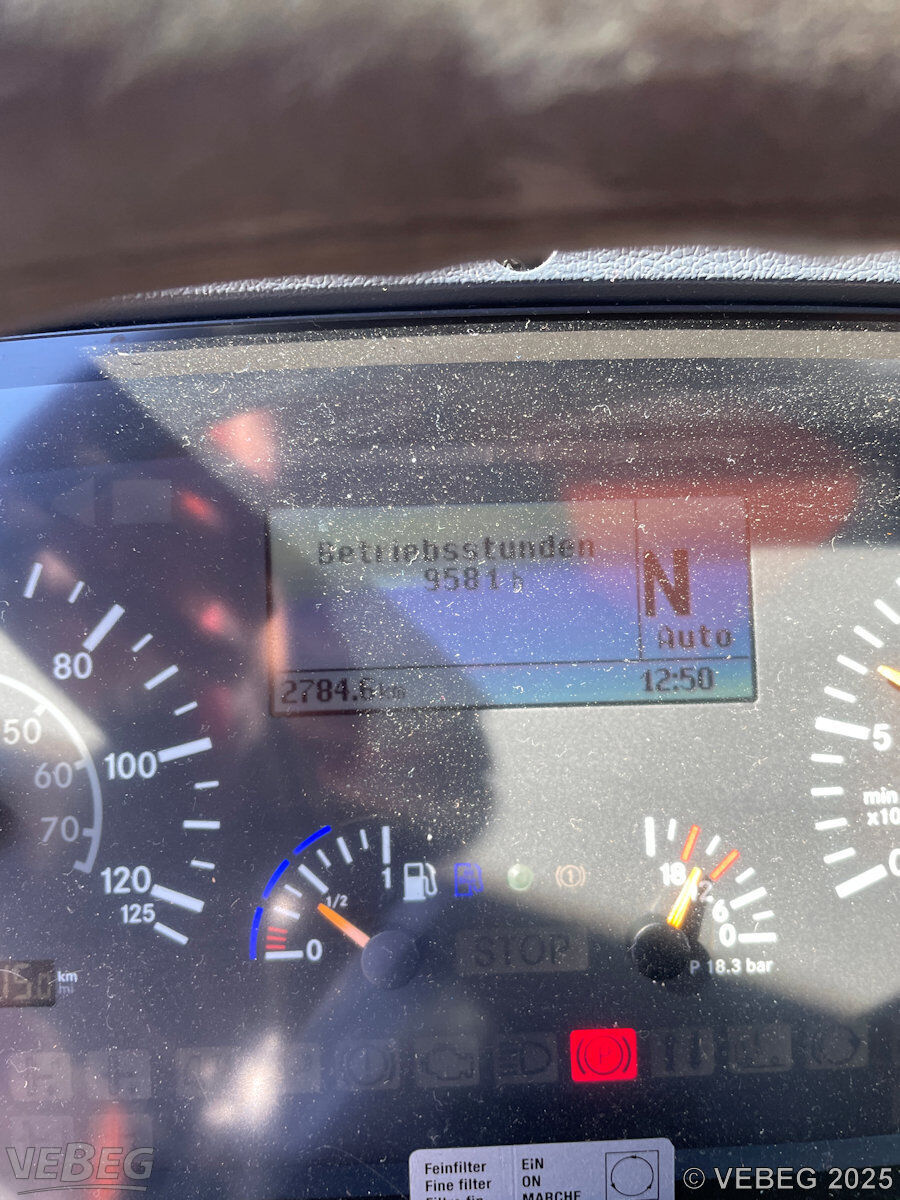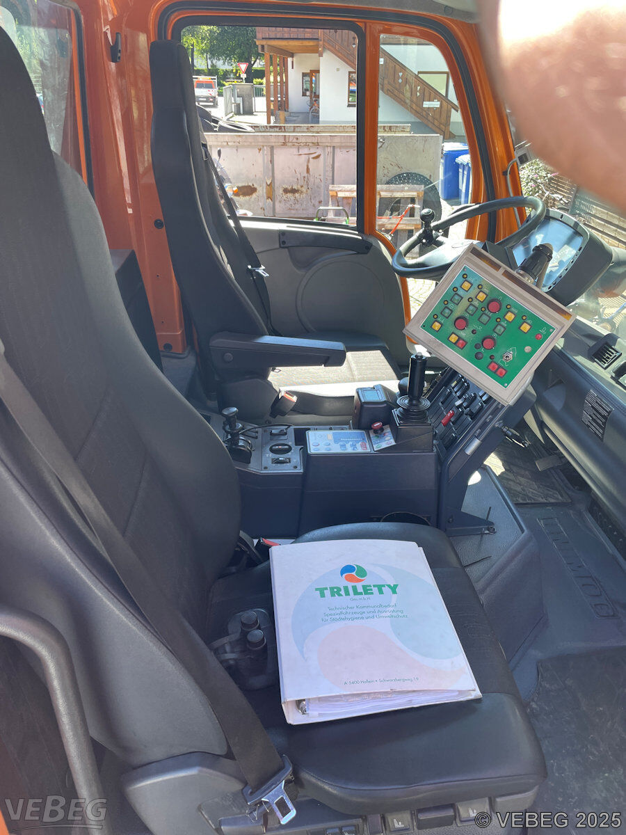 Motorleistung 210 kW, 9.581 Betriebsstunden; Kehrmaschinenaufbau Trilety TK358, Schwemmbalken Trilety WBT35, Kommunalhydraulik, Kipperzylinder, Rundumkennleuchten; Zubehör: 26 x Walzenbesen, 20 x Tellerbesen, Abstellstützen;