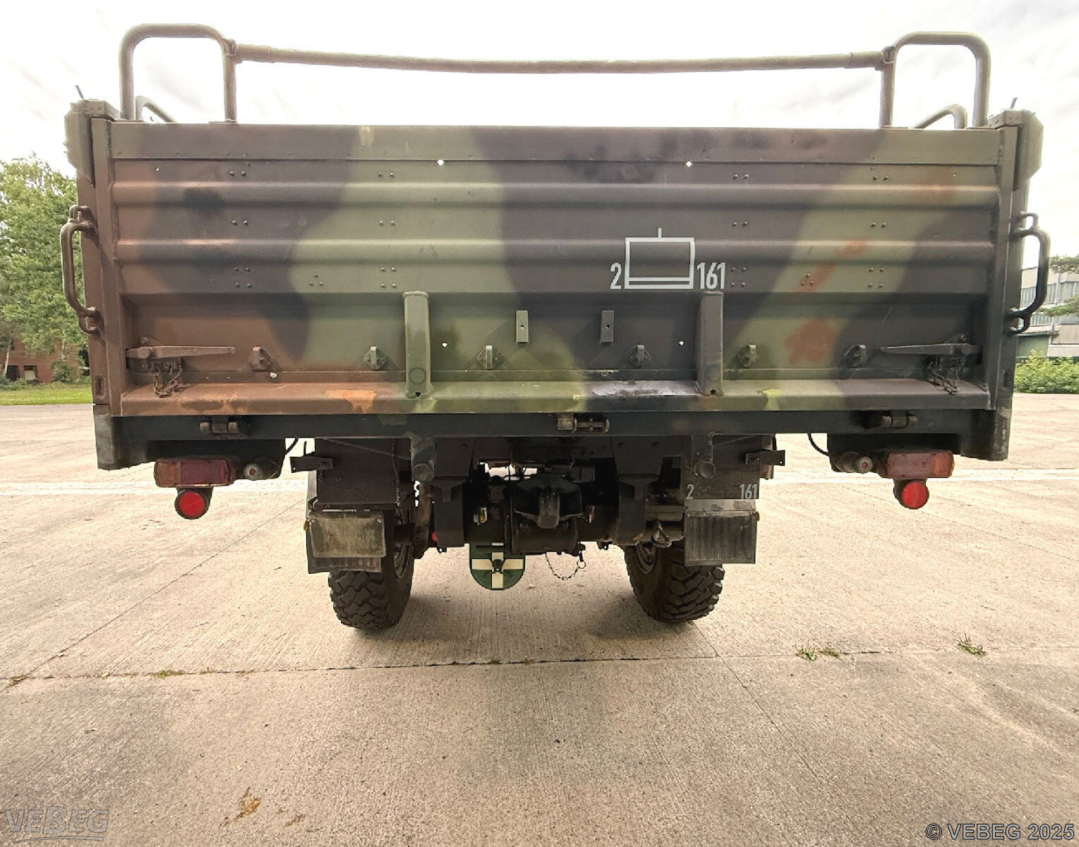 NoticeTermine für Besichtigung oder Abholung sind mit der zuständigen Lagerortdienststelle verpflichtend vorab per Telefon /oder E-Mail zu vereinbaren.Ausfuhrgenehmigungspflichtig [Info] . Bidding basisStückBitte beachten Sie auch die Hinweise und Bedingungen im Vorspann zu dieser Ausschreibung: Die von der VEBEG angebotenen Fahrzeuge stammen aus Aussonderungen ihrer Auftraggeber. Einzelheiten zum Zustand der jeweiligen Fahrzeuge entnehmen Sie bitte den Lostexten. Zusätzlich verweisen wir ausdrücklich auf Abschnitte B und G unserer Allgemeinen Geschäftsbedingungen (AGB). Fahrzeuge die nach Einschätzung der VEBEG der Ausfuhrgenehmigungspflicht unterliegen, sind mit Verweis auf die Punkte E3 und E4 unserer AGB entsprechend gekennzeichnet. Zum Gebotspreis kommt die gesetzliche Umsatzsteuer hinzu. Die Differenzbesteuerung gemäß § 25a UStG wird nur angewendet, wenn dies ausdrücklich in der jeweiligen Ausschreibung angegeben ist. | Lagerort / StandortBundeswehrTOffz LogBtl 161 Delmetal-Kaserne Abernettistraße 200 Tel.: 04221 92180-0 Durchwahl: 3500 oder 3501 27755 Delmenhorst |