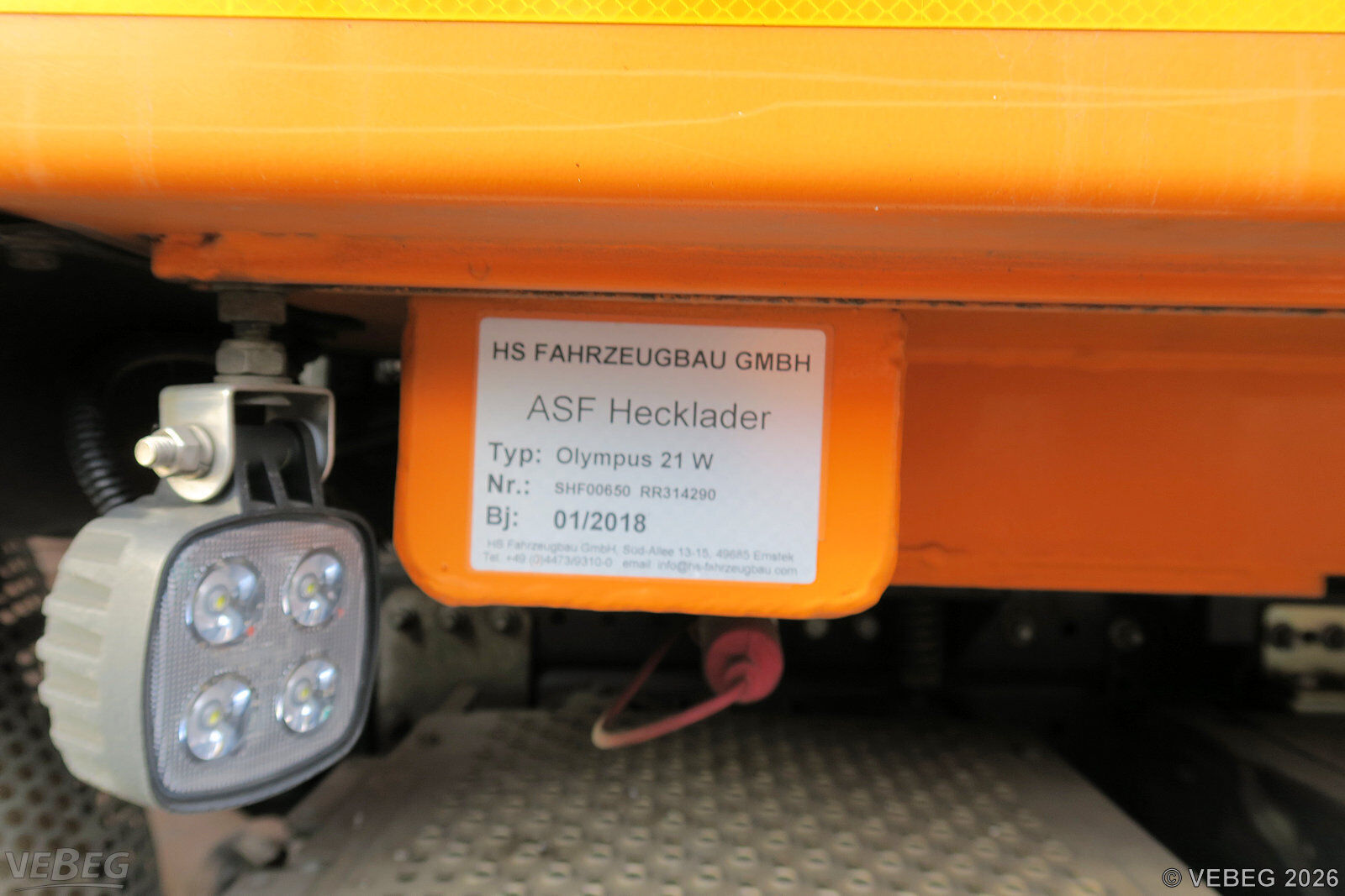 NoticeTermine für Besichtigung oder Abholung sind mit der zuständigen Lagerortdienststelle verpflichtend vorab per Telefon /oder E-Mail zu vereinbaren.Bidding basisStückHinweisFür dieses Los existiert eine zusätzliche Gebotsmöglichkeit.Zur zusätzlichen Gebotsmöglichkeit Bitte beachten Sie auch die Hinweise und Bedingungen im Vorspann zu dieser Ausschreibung: Die von der VEBEG angebotenen Fahrzeuge stammen aus Aussonderungen ihrer Auftraggeber. Einzelheiten zum Zustand der jeweiligen Fahrzeuge entnehmen Sie bitte den Lostexten. Zusätzlich verweisen wir ausdrücklich auf Abschnitte B und G unserer Allgemeinen Geschäftsbedingungen (AGB). Fahrzeuge die nach Einschätzung der VEBEG der Ausfuhrgenehmigungspflicht unterliegen, sind mit Verweis auf die Punkte E3 und E4 unserer AGB entsprechend gekennzeichnet. Zum Gebotspreis kommt die gesetzliche Umsatzsteuer hinzu. Die Differenzbesteuerung gemäß § 25a UStG wird nur angewendet, wenn dies ausdrücklich in der jeweiligen Ausschreibung angegeben ist. | Lagerort / StandortDie Stadtreiniger KasselZentrale Dienste Am Lossewerk 15 Tel.: 0561 5003-0 Herr Weiland Durchwahl: 257 s.weiland@stadtreiniger.de 34123 Kassel | ||||||||||||||||